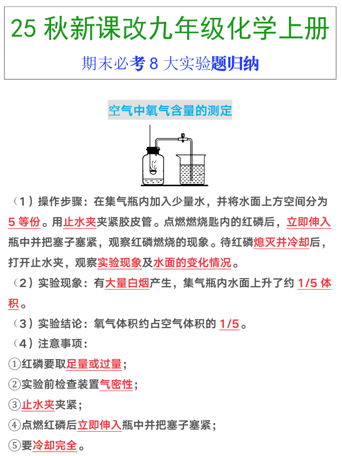 【2025秋新版】九年级上册化学期末必考8大实验题归纳