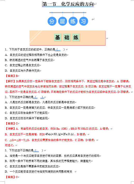 (鲁科)化学选择性必修1 随堂优练(25课时)2.1化学反应的方向(解析版)
