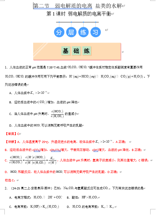 (鲁科)化学选择性必修1 随堂优练(25课时)3.2.1 弱电解质的电离平衡(解析版)