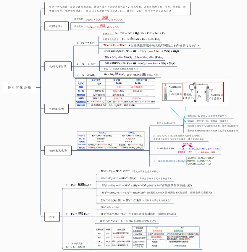 2026版高中《思维导图》高考复习(必修1+2)(化学)铁及其化合物 思维导图- 高中化学复习思维导图(新教材专用)