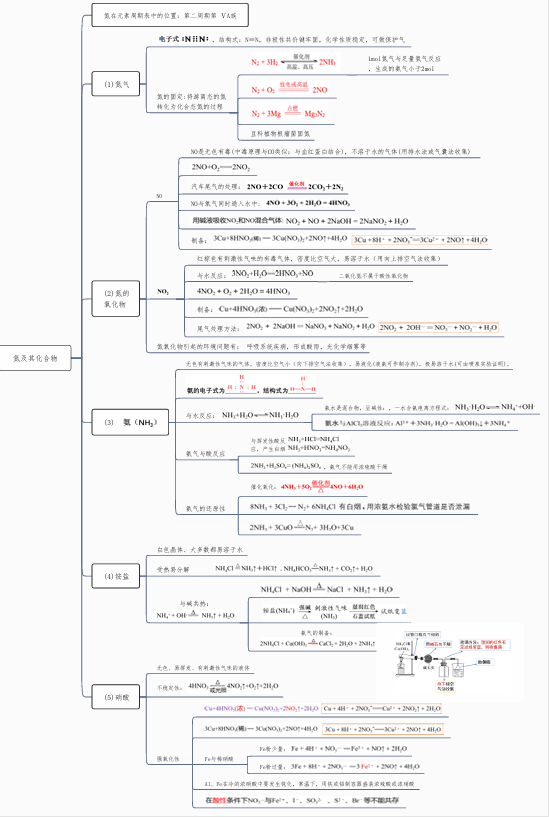 2026版高中《思维导图》高考复习(必修1+2)(化学)氮及其化合物 思维导图- 高中化学复习思维导图(新教材专用)