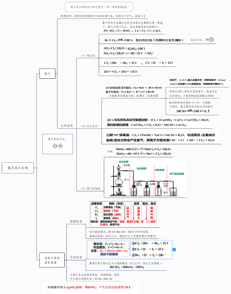2026版高中《思维导图》高考复习(必修1+2)(化学)氯及其化合物 思维导图- 高中化学复习思维导图(新教材专用)