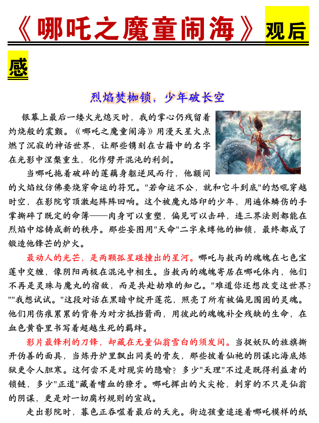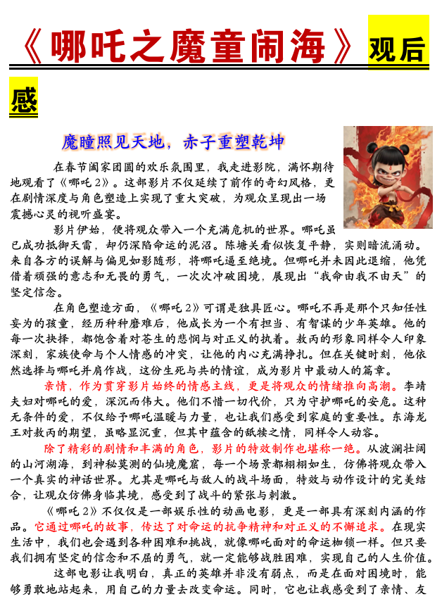 《哪吒2之魔童闹海》观后感范文4篇