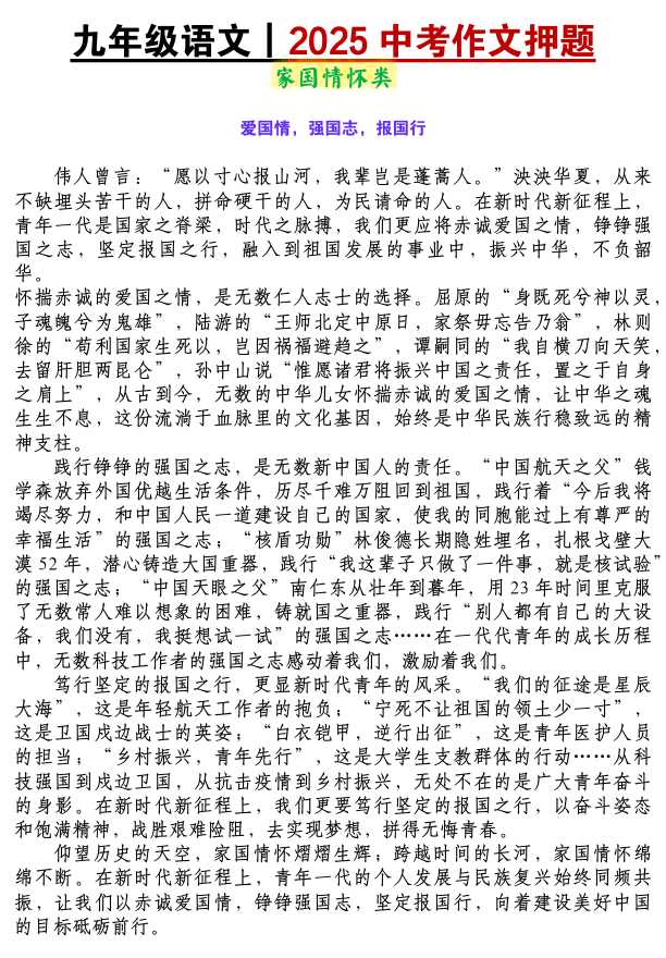 2025中考常考五大主题作文