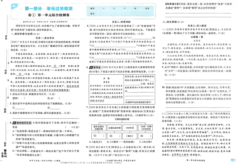 2026版初中《必刷题上分卷》9年级上册(7科全套)语文