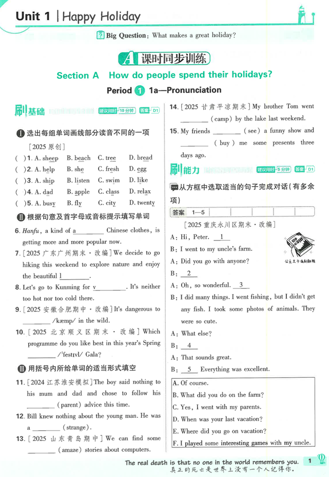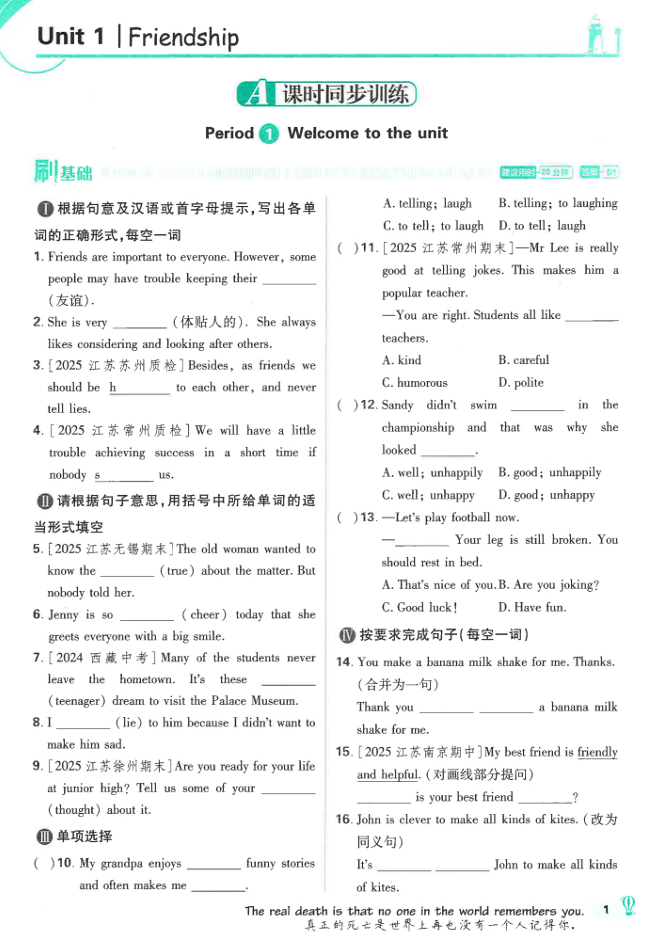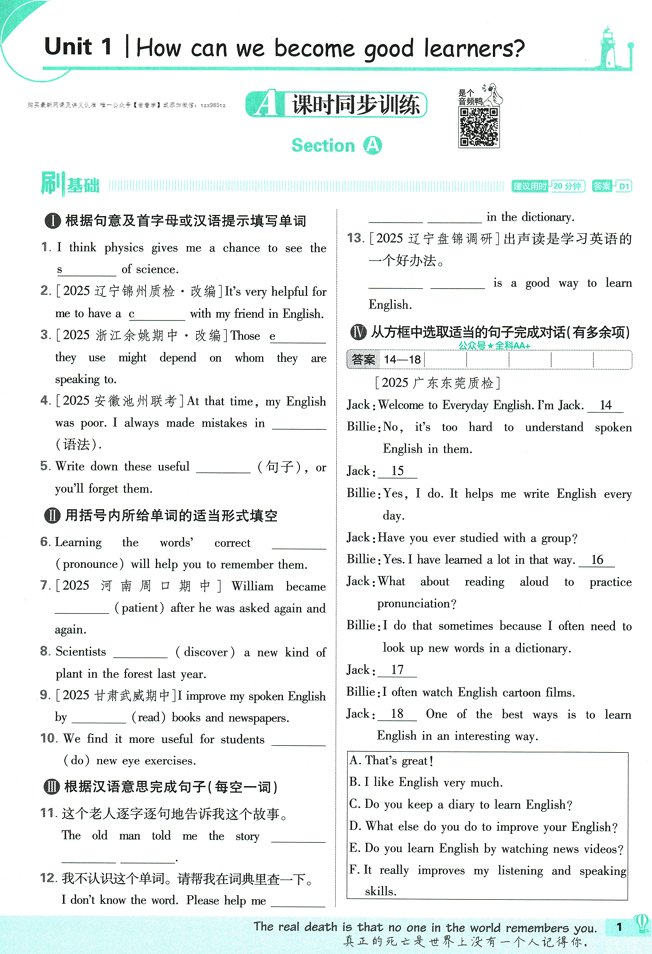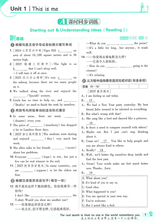 2026《初中必刷题•英语》9上(人教)狂K重点