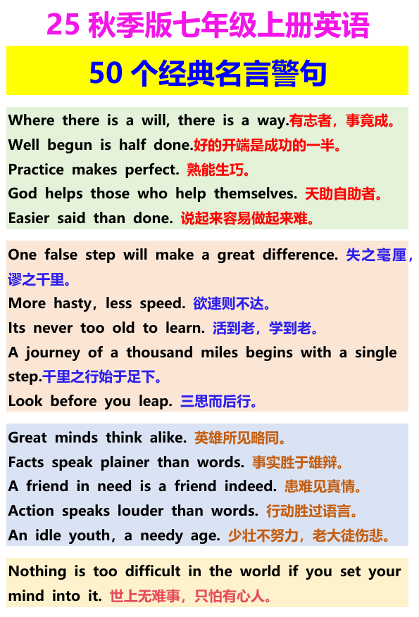 【2025秋新版】七年级上册英语 50个经典名言警句