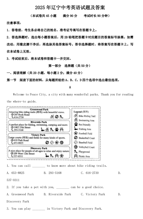 2025年辽宁中考英语试题及答案