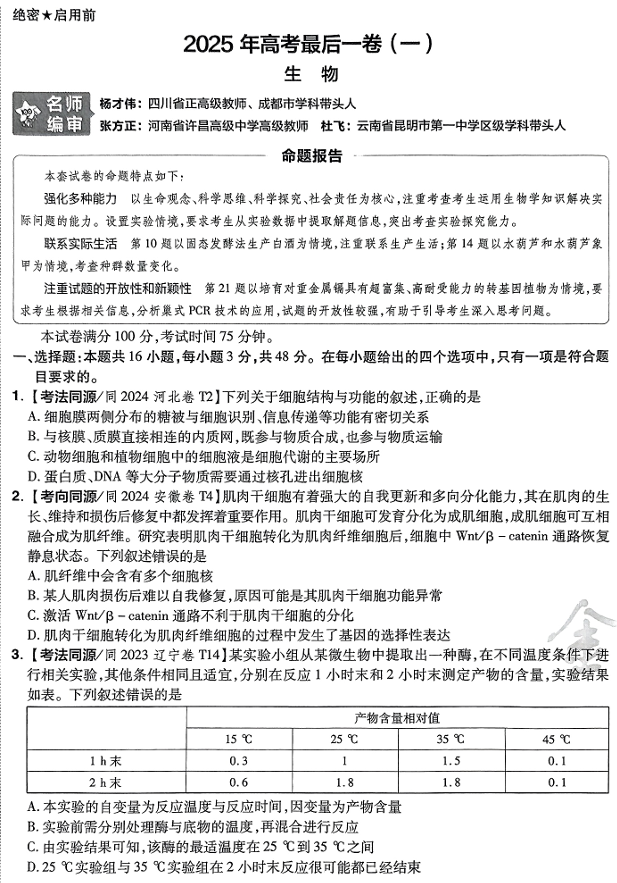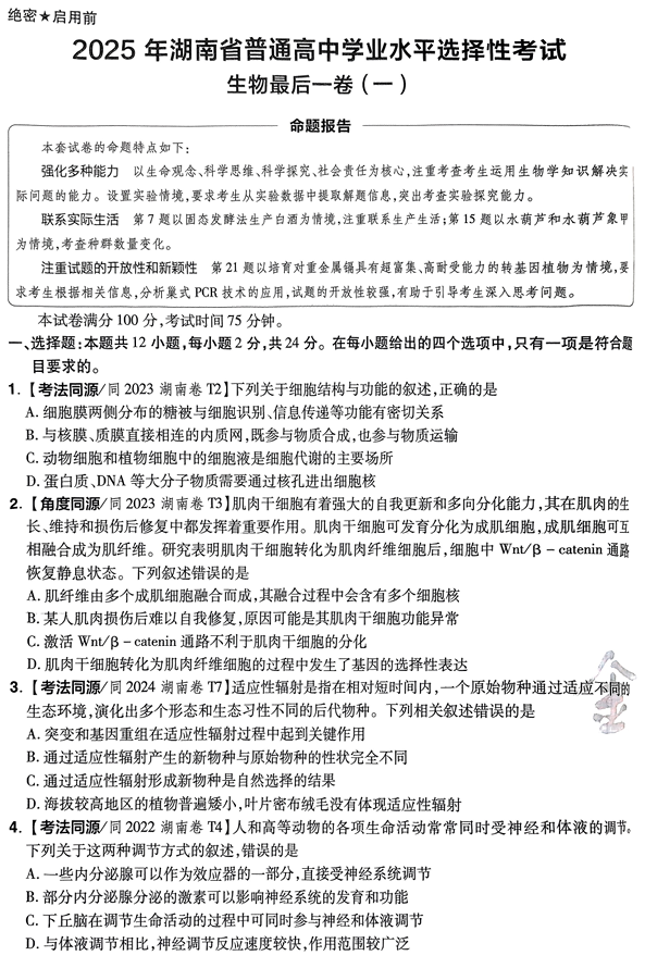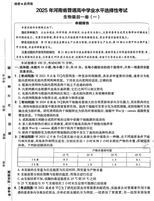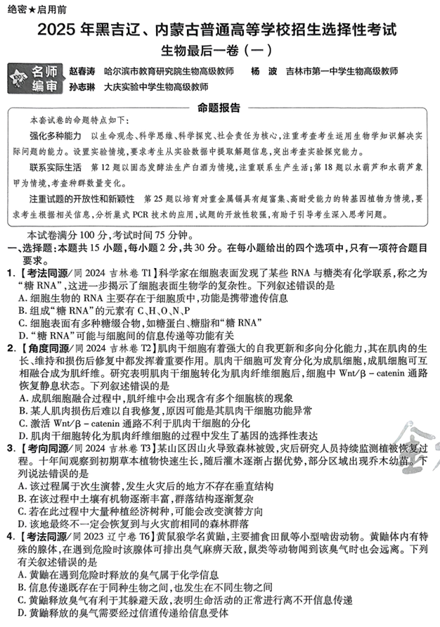 2026版高考试题分析-生物