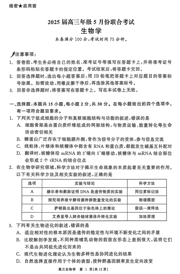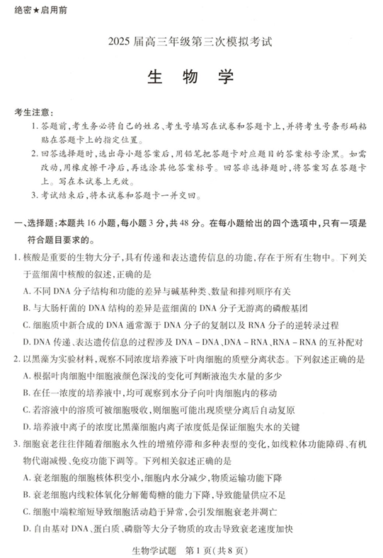 高考生物模拟试题