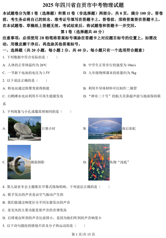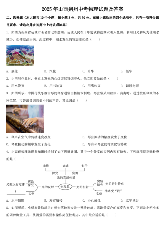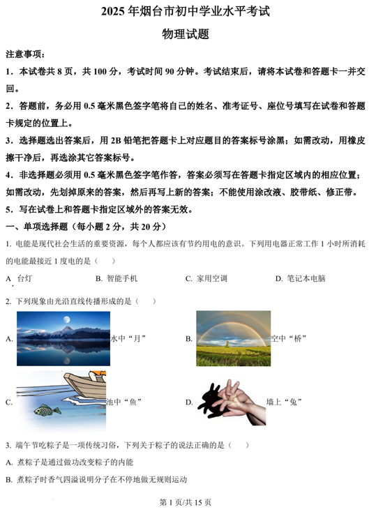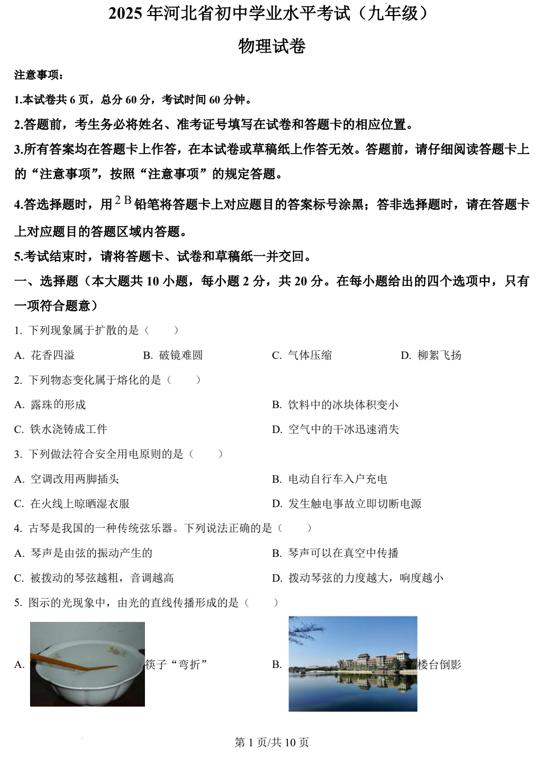 2025人教版八上物理第一次月考真题卷3套电子版下载