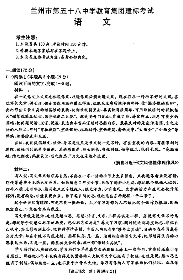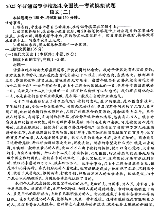 高考语文模拟试题