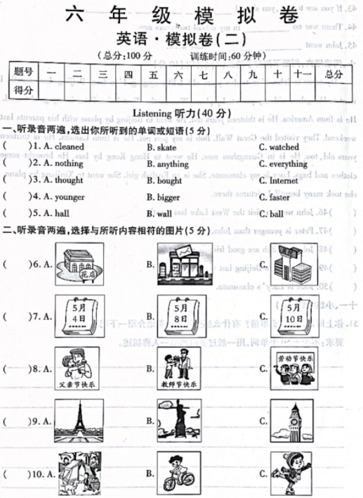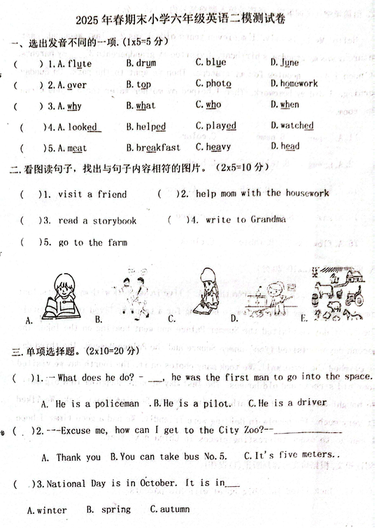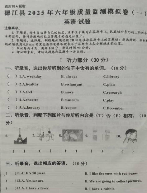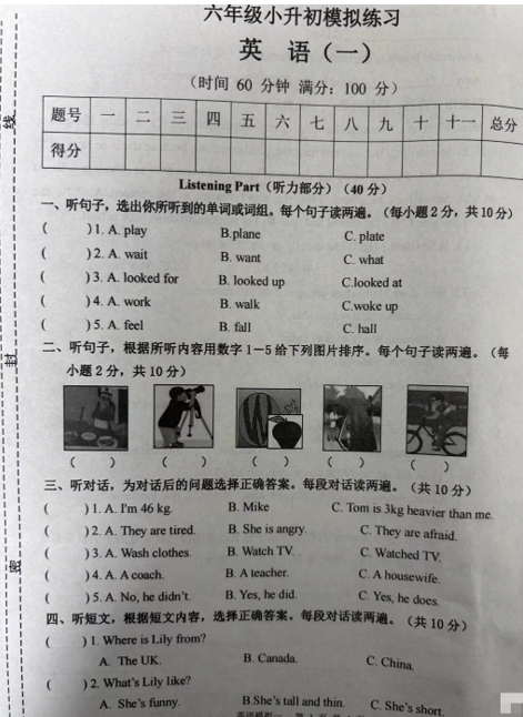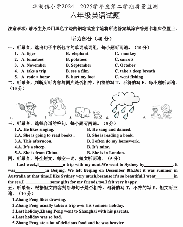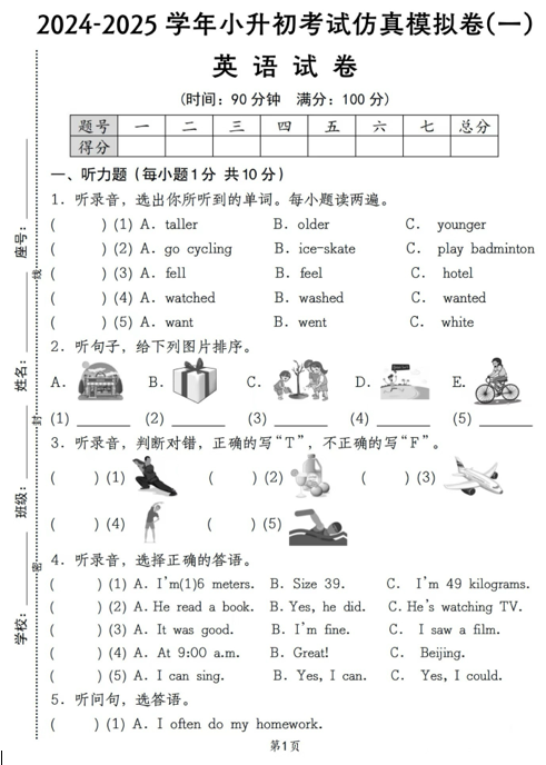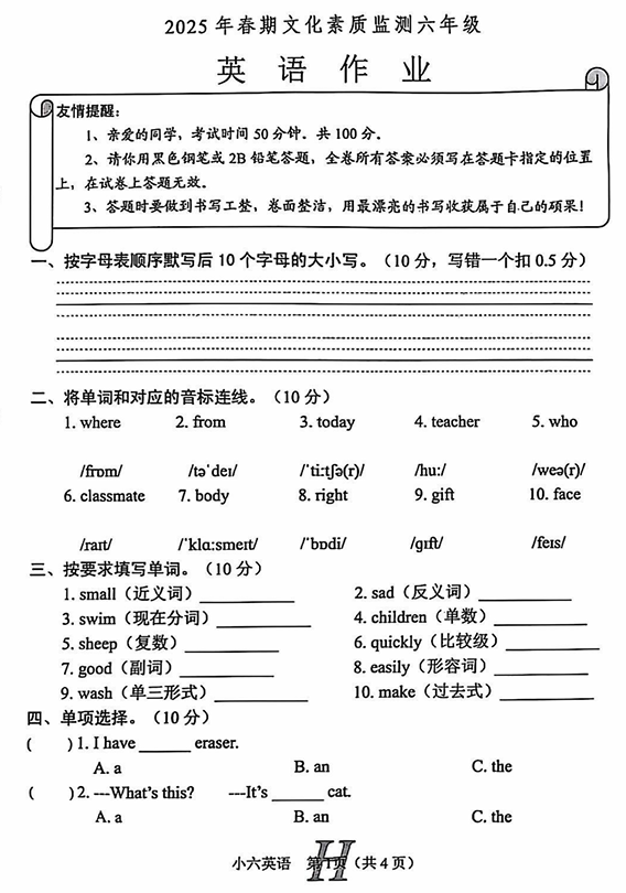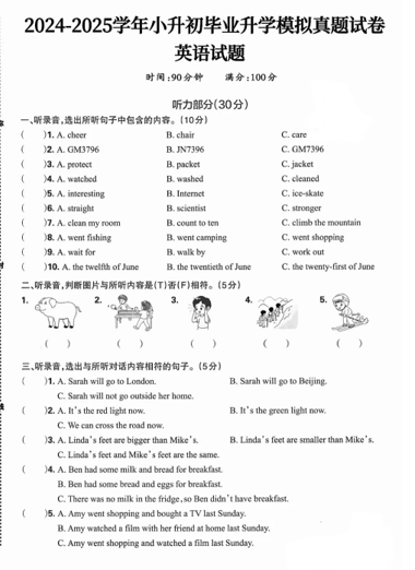 广东省东莞市丰泰外国语学校2025-2026学年六年级上学期期中模拟测试英语试卷